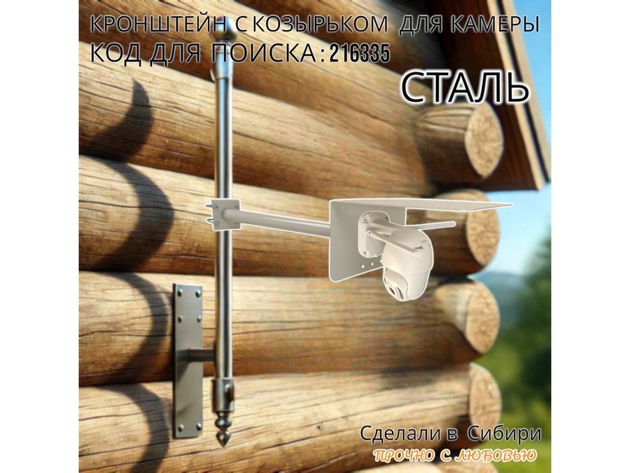 Кронштейн с козырьком для видеокамеры на трубу 15...51мм вылет 50см 24х22см "HIWOLL-216335" серый