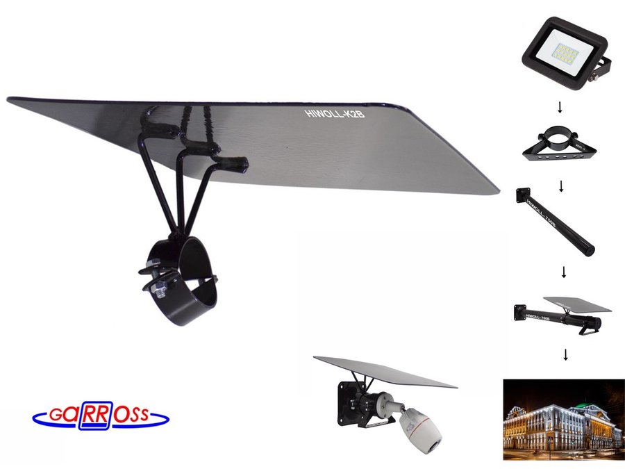 Кронштейн-козырёк от дождя "HIWOLL-83528" 27х27см, с хомутом 51мм для защиты камеры,сталь 2мм,чёрный