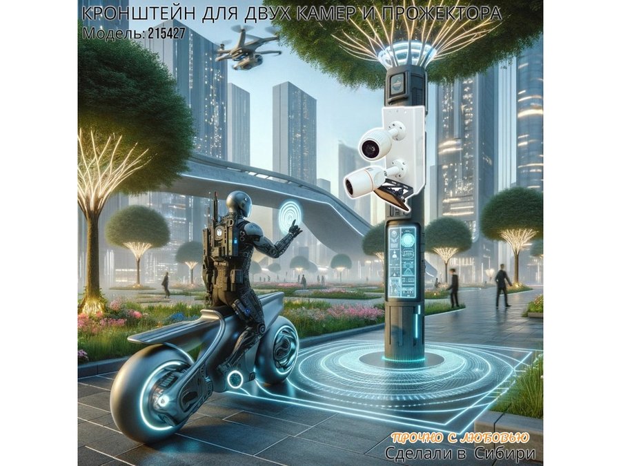 Набор 2 шт. Кронштейн для крепления двух камер и прожектора на столб при помощи СИП - ленты или хомутов
