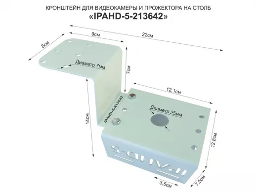- Кронштейн позволяет быстро зафиксировать камеру и прожектор на столбе, не сверля его.