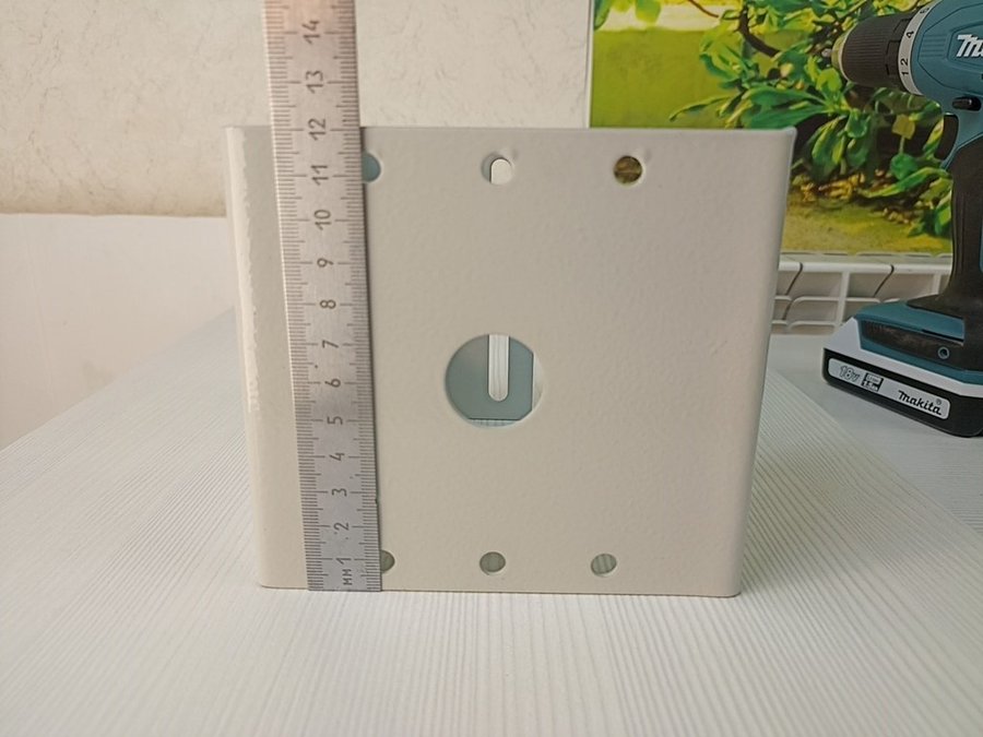 - Кронштейн сделан такой глубины, что за ним (внутри) входит по размеру распределительная коробка.
