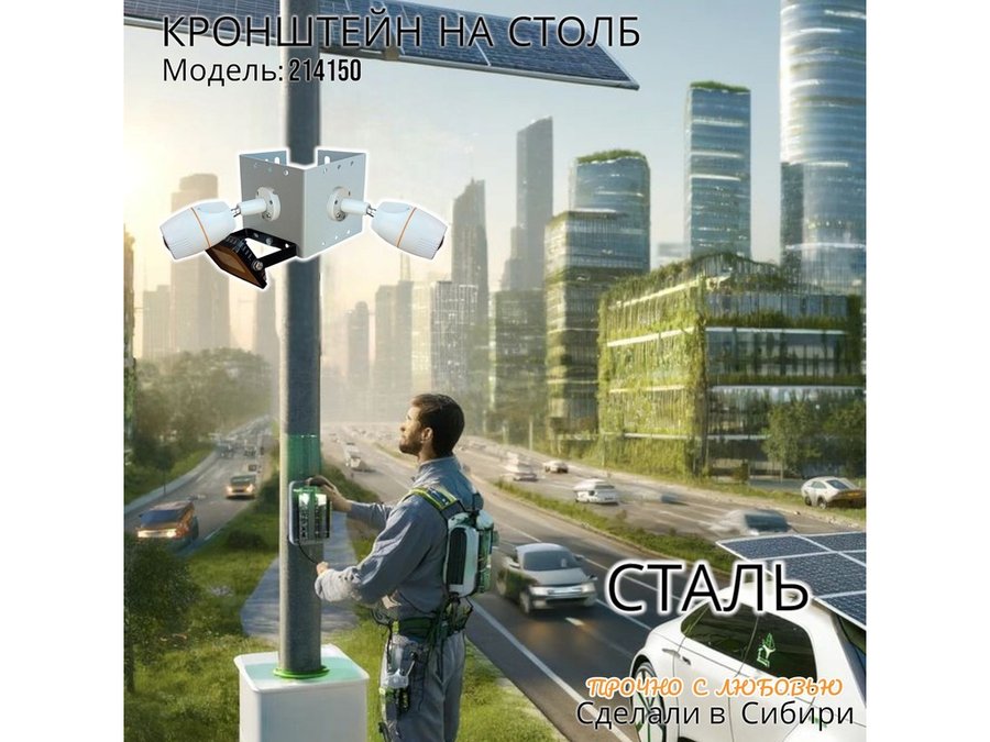 - Кронштейн позволяет быстро зафиксировать камеры видеонаблюдения или прожектор на столбе, не сверля его.