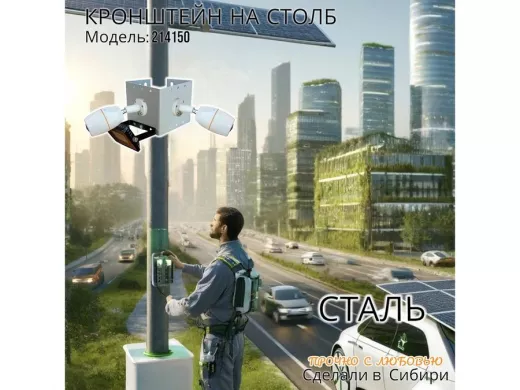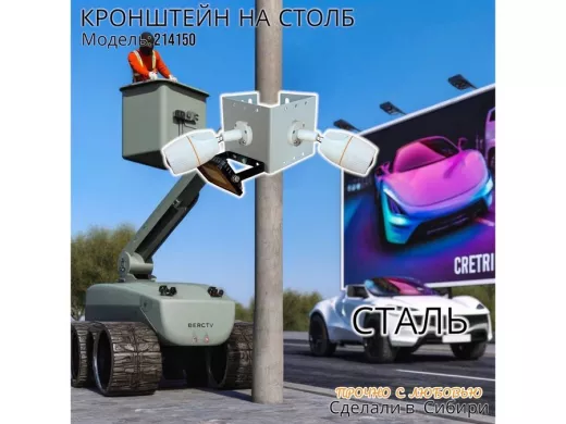 - Кронштейн для двух камер и прожектора, крепится при помощи СИП ленты монтажной на квадратный или круглый столб.