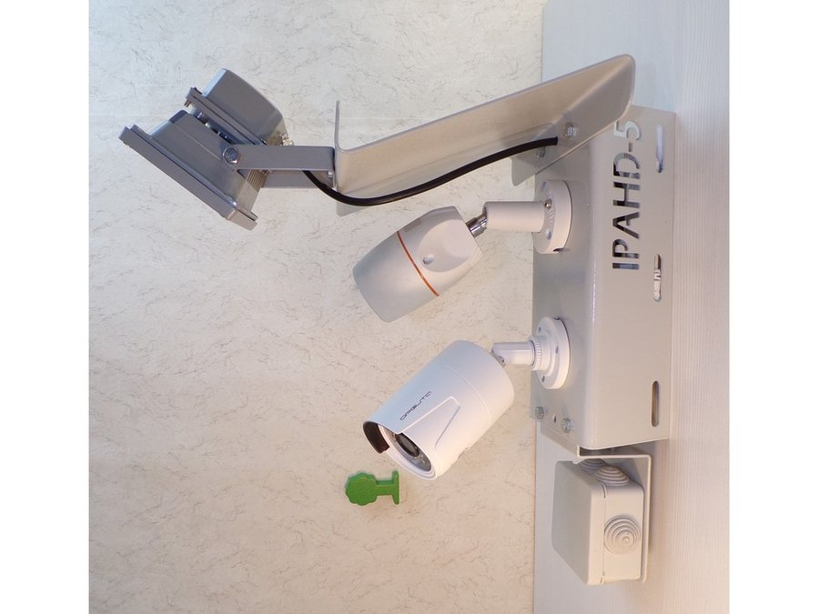 Кронштейн для двух камер и прожектора на столб с козырьком и пластиной серый "IPAHD-5-214548"