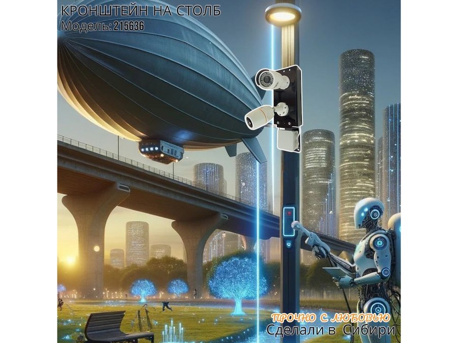 Кронштейн для двух камер и прожектора на столб с пластиной для гермокоробки черный IPAHD-5-215636