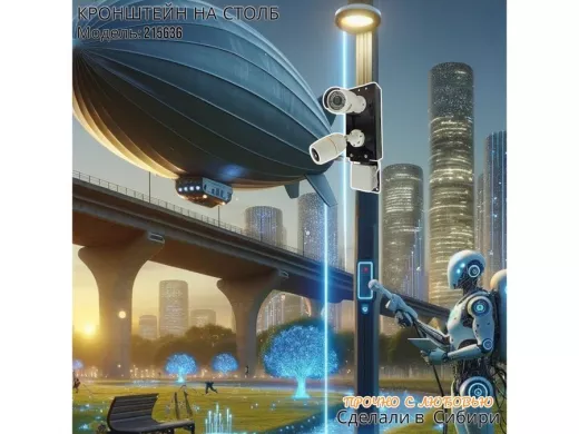 Кронштейн с пластиной для монтажной коробки для крепления двух камер и прожектора на столб при помощи СИП - ленты или хомутов