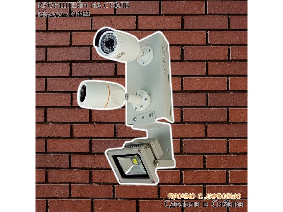 Кронштейн для двух камер на столб с пластиной для прожектора "IPAHD-5-214483" прочная сталь, серый