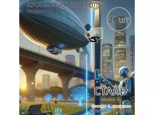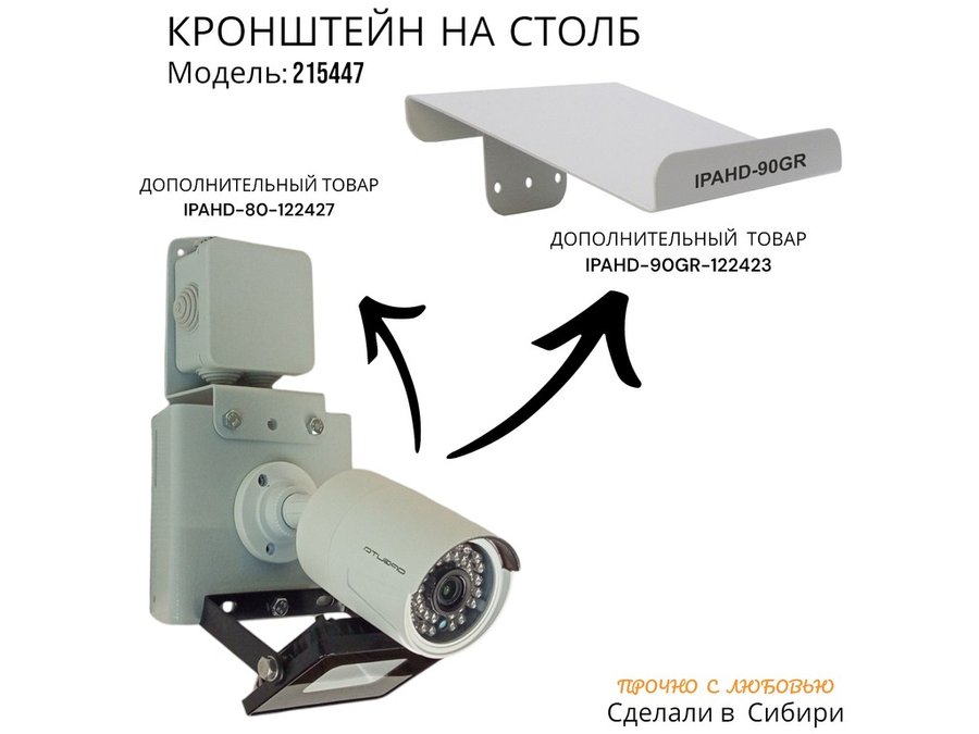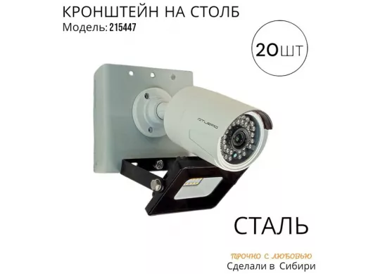 • Кронштейн для 1 камеры и прожектора, крепится при помощи СИП ленты монтажной на квадратный или круглый столб. Подходит для любых камер.