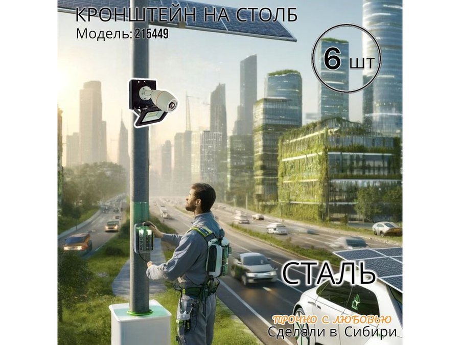 - Кронштейн позволяет быстро зафиксировать камеру и прожектор на столбе, не сверля его.