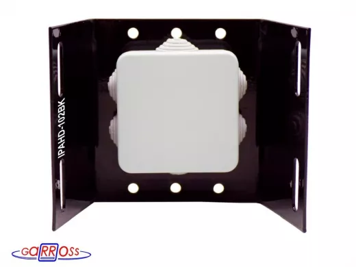 • Конструкция кронштейна позволяет крепить дополнительную опцию в виде разводной коробки, для укладки соединительных электропроводов от камеры и прожектора.