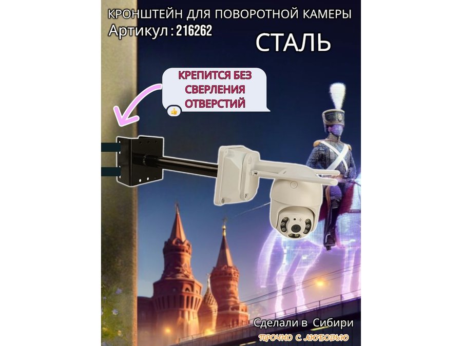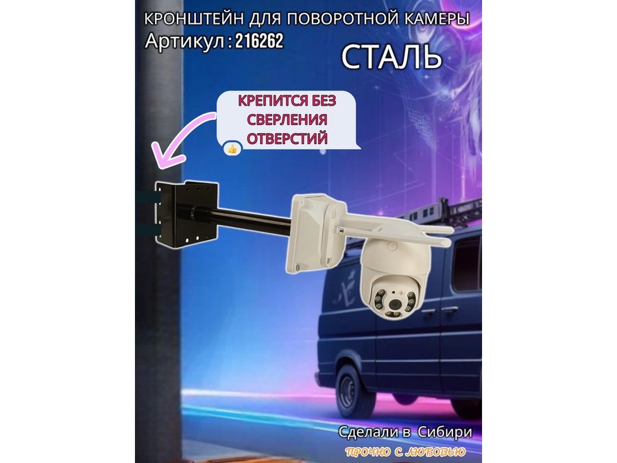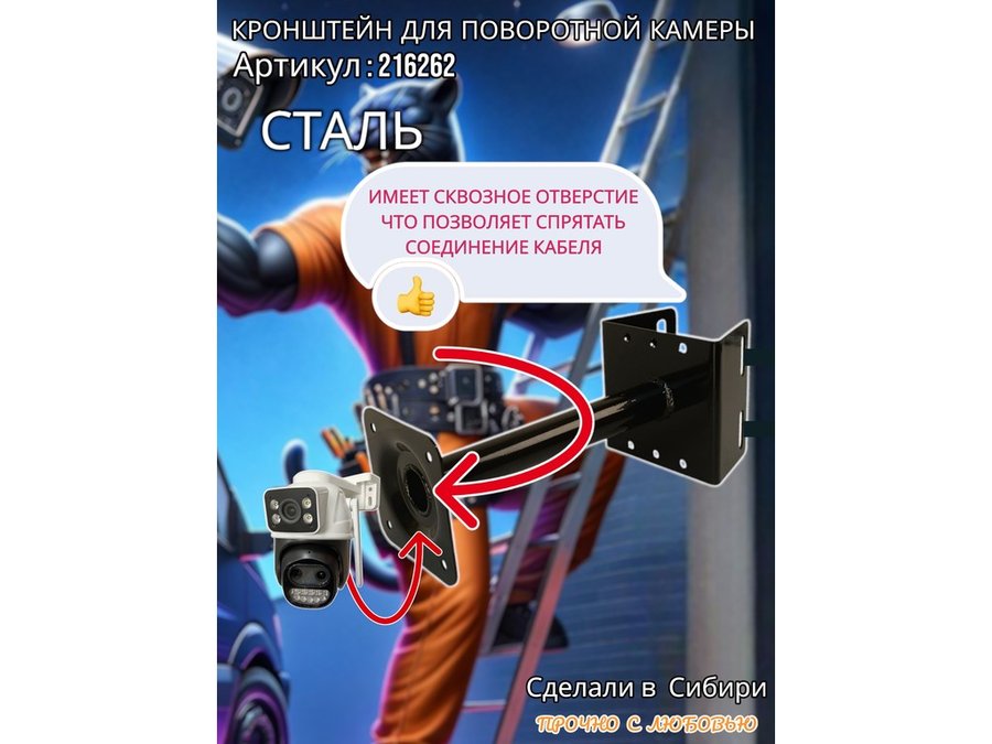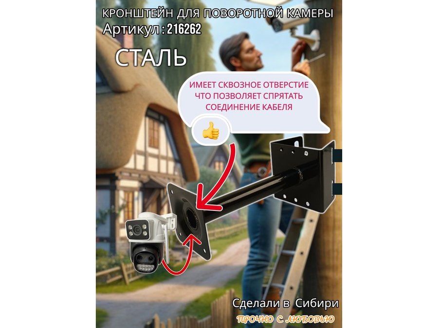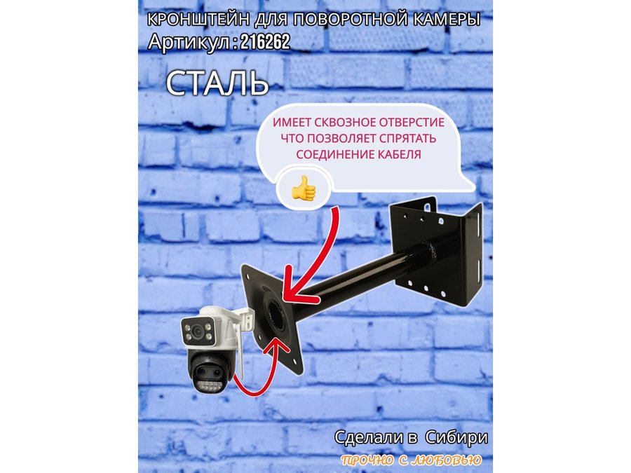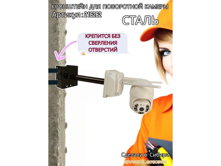 - Стальной кронштейн позволяет вынести камеру от столба на 25 см.
