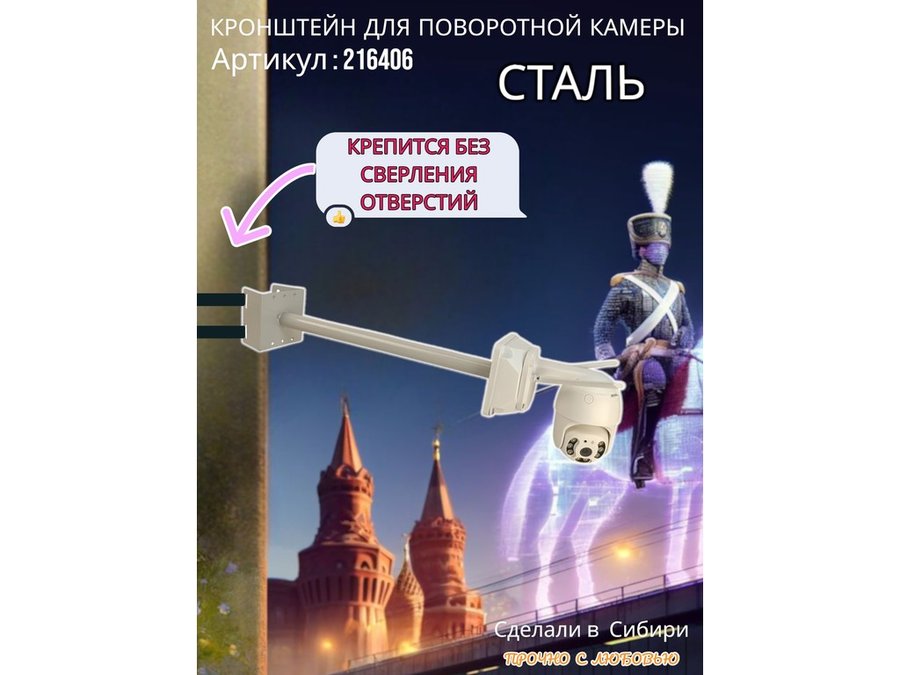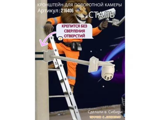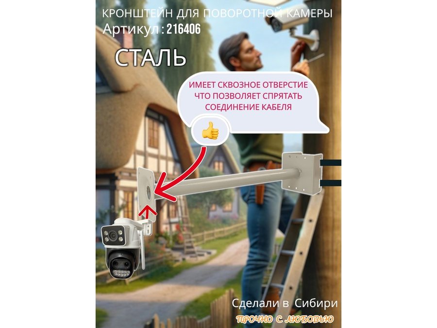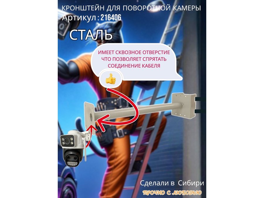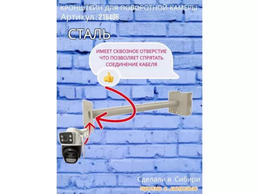 - Стальной кронштейн позволяет вынести камеру от столба на 50 см.