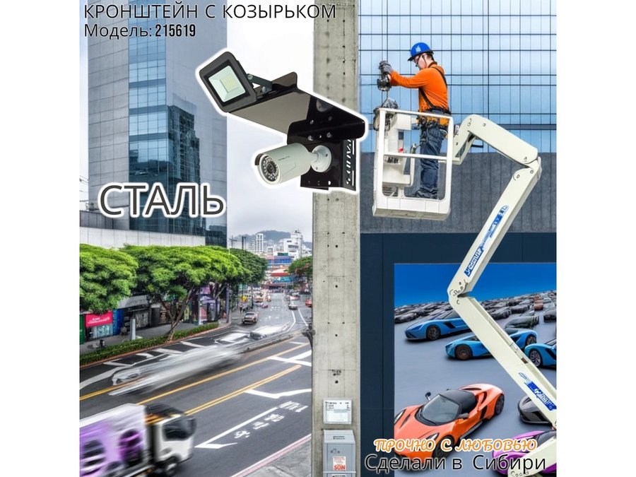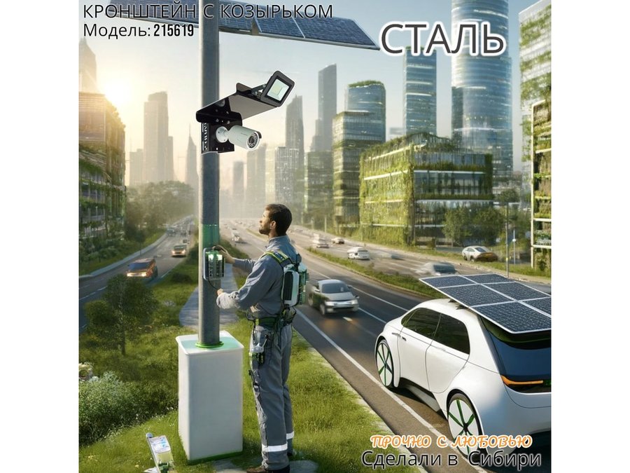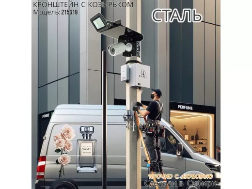 - Кронштейн позволяет быстро зафиксировать камеру и прожектор на столбе, не сверля его.