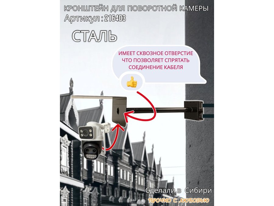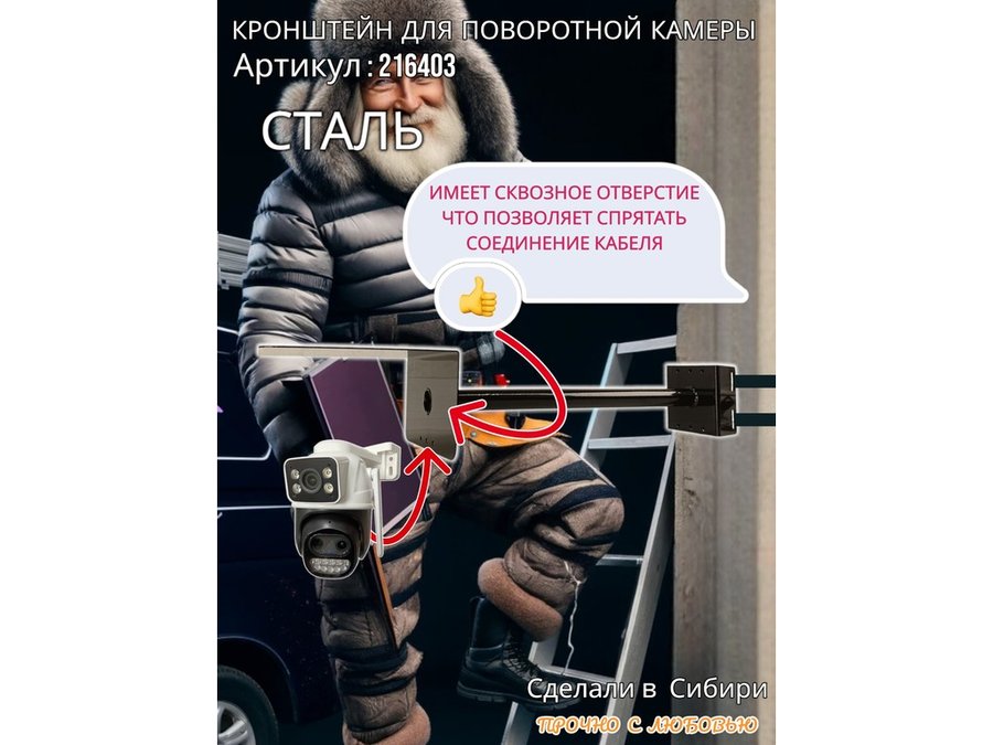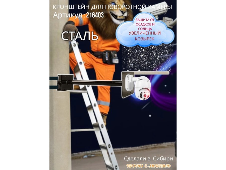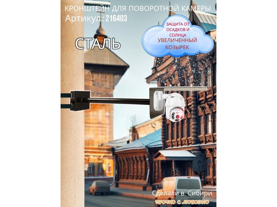 • Стальной кронштейн позволяет вынести камеру от столба на 50 см.