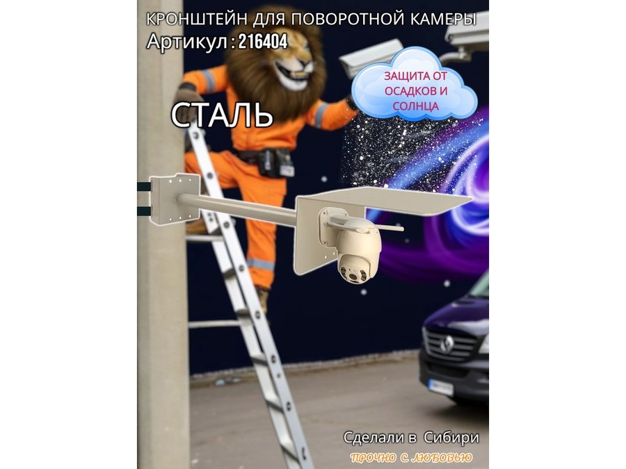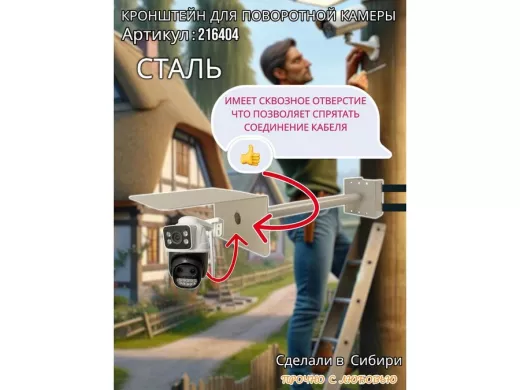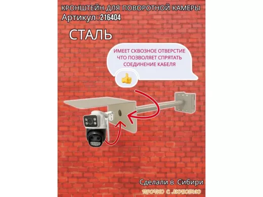- Стальной кронштейн позволяет вынести камеру от столба на 50 см.