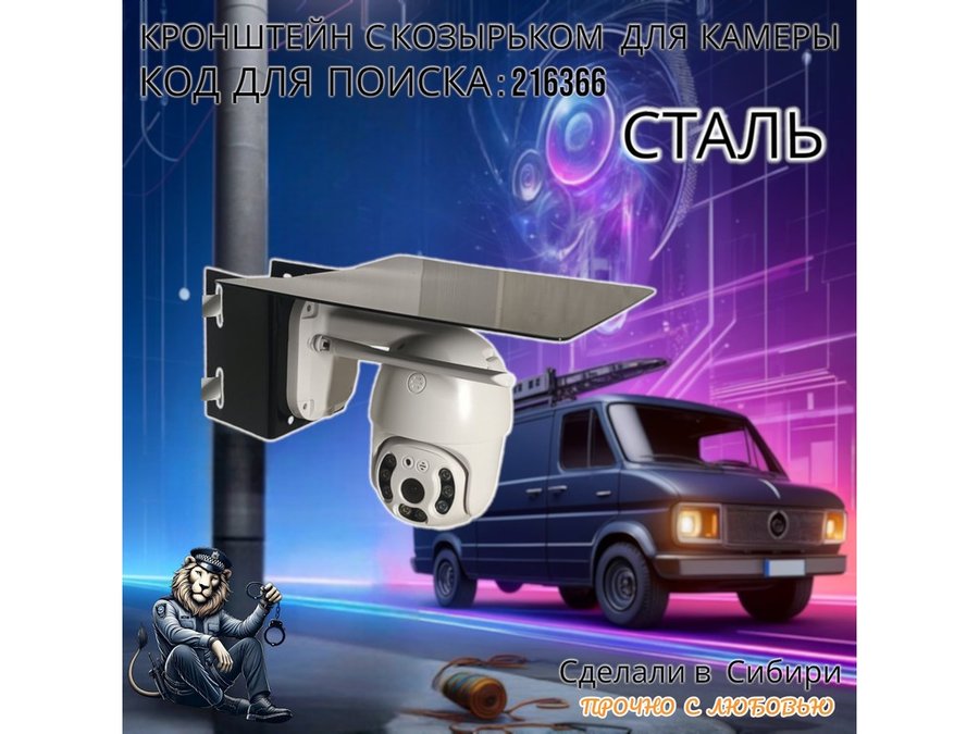 • Кронштейн для крепления поворотной камеры, крепится при помощи СИП ленты монтажной на квадратный или круглый столб.
