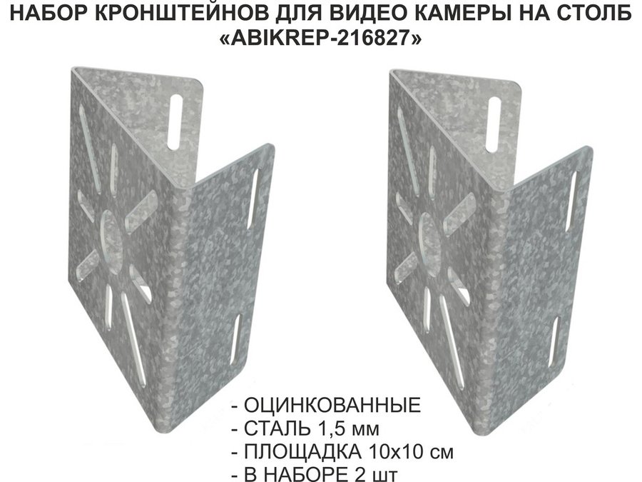 Набор 12 шт. Кронштейн оцинкованный для камеры на столб "ABIKREP-216844" 100х104мм, сталь,под хомуты