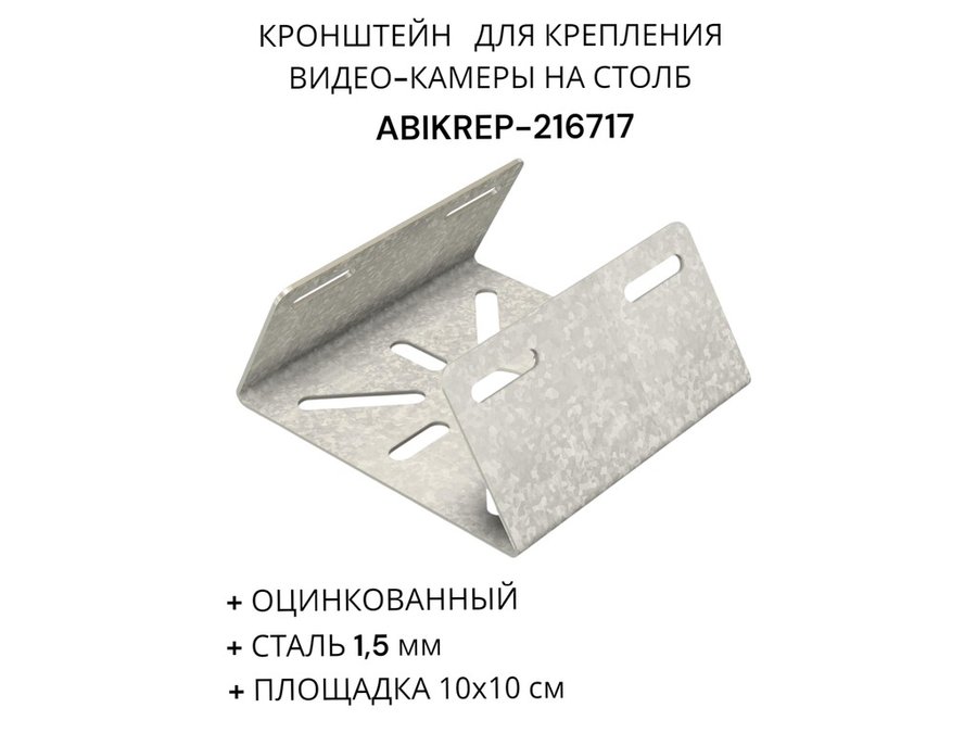 В корзину Купить в 1 клик Кронштейн оцинкованный для камеры на столб "ABIKREP-216717" 100х104мм, сталь, под хомуты, вылет 5см