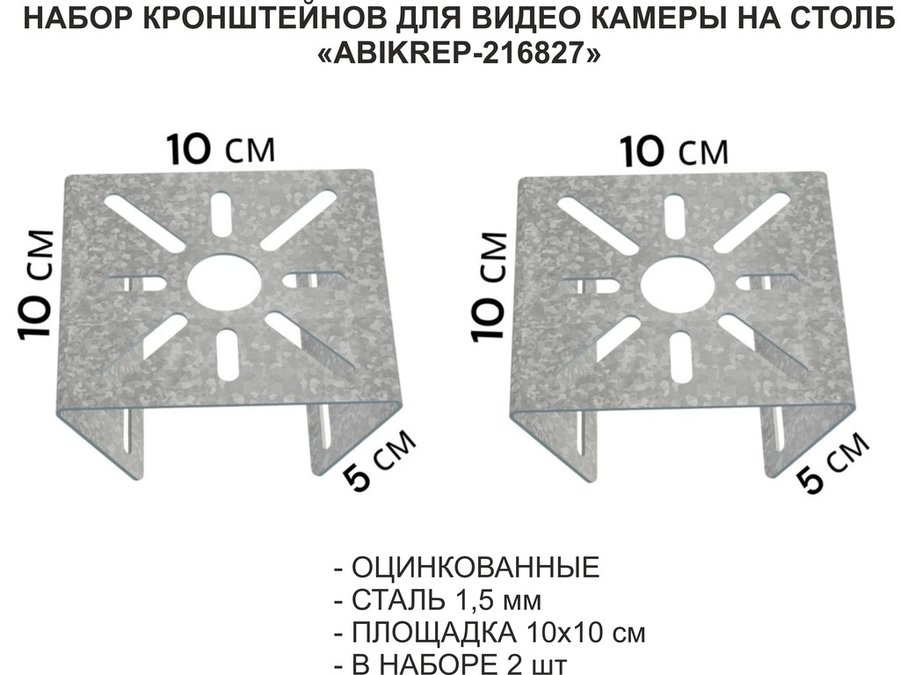 Набор 2 шт. Кронштейн оцинкованный для камеры на столб "ABIKREP-216827" 100х104мм, сталь,под хомуты