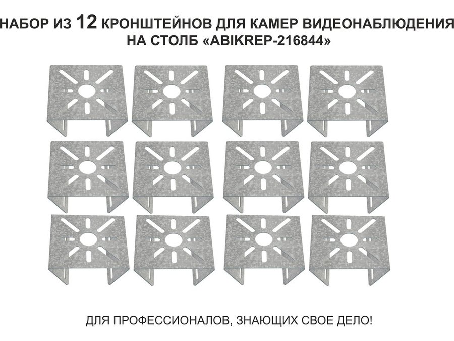 Набор 12 шт. Кронштейн оцинкованный для камеры на столб "ABIKREP-216844" 100х104мм, сталь,под хомуты