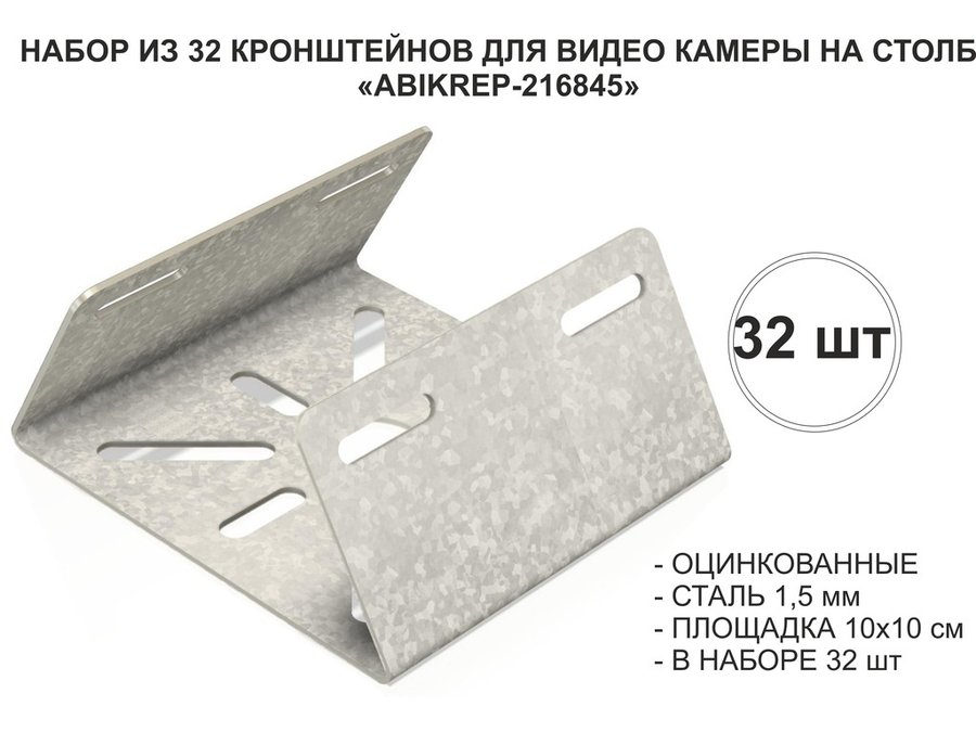 Набор 32 шт. Кронштейн оцинкованный для камеры на столб "ABIKREP-216845" 100х104мм, сталь,под хомуты