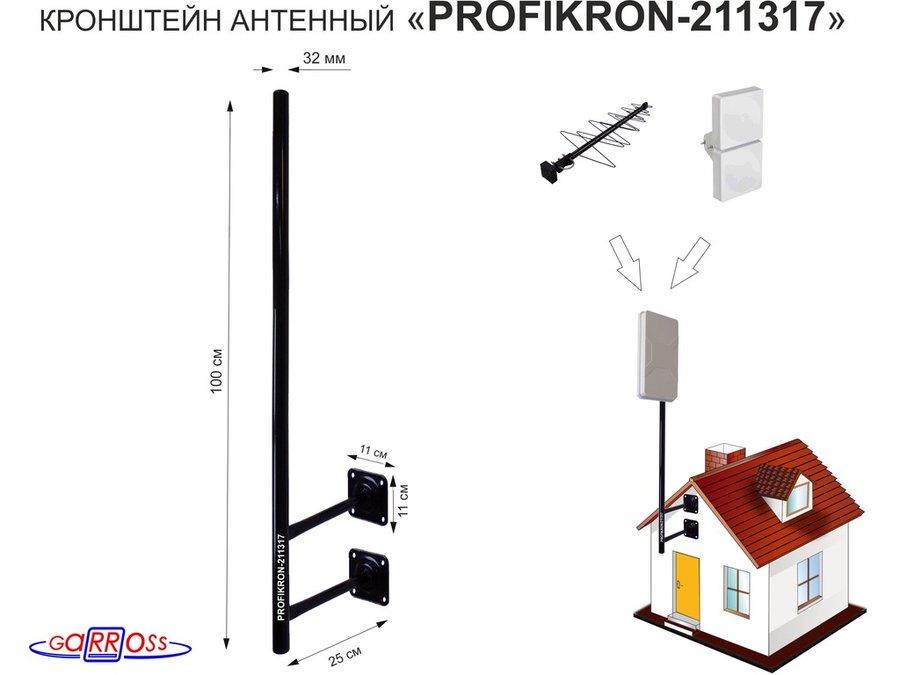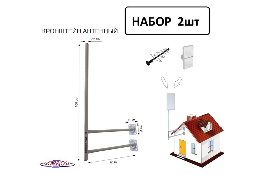 . Для антенн. Кронштейны к стене "PROFIKRON" Диаметр 32мм, две опоры, высотой 1 метр с колпачком.