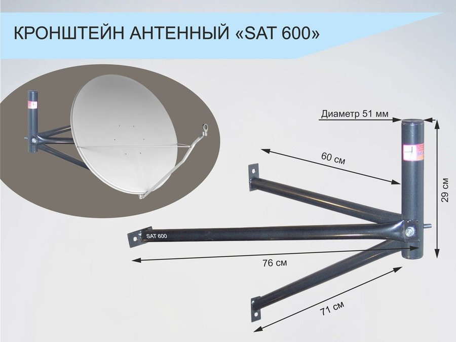 . Для антенн (спутниковых тарелок). Кронштейны усиленные "SAT-600" к стене