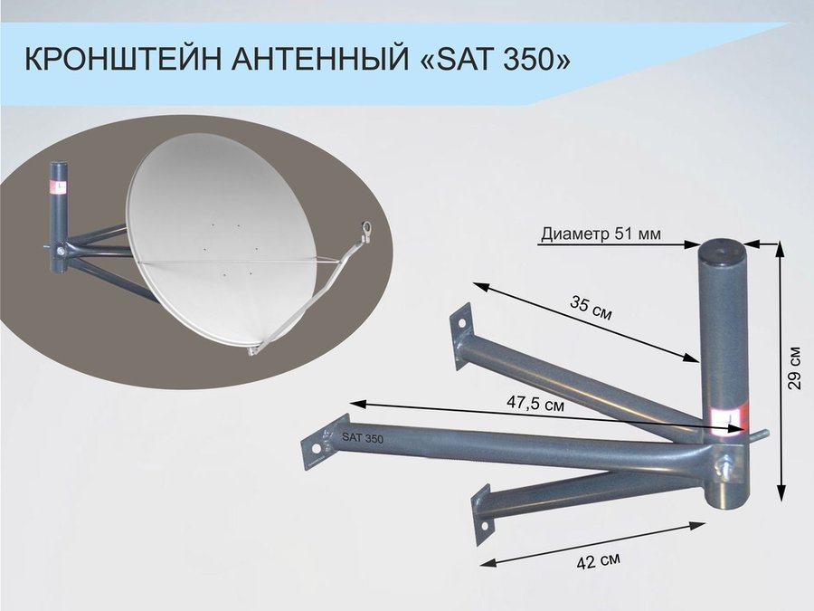 В корзину Купить в 1 клик Кронштейн для спутниковых антенн, вылет 0,35 метра "SAT-350-214981" серый, разборный, диаметр 51мм