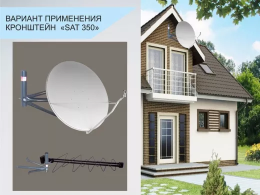 • "SAT-350" кронштейн антенный разборный предназначен для крепления антенн эфирных и спутниковых офсетных антенн к стенам зданий