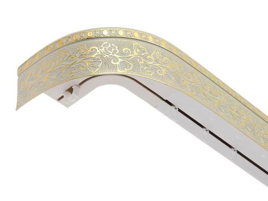 В корзину Купить в 1 клик 250см карниз КРУЖЕВО ЗОЛОТО БЕЛЫЙ 2х рядный с декор. планкой 70мм в индивид. упаковке. ультракомпакт