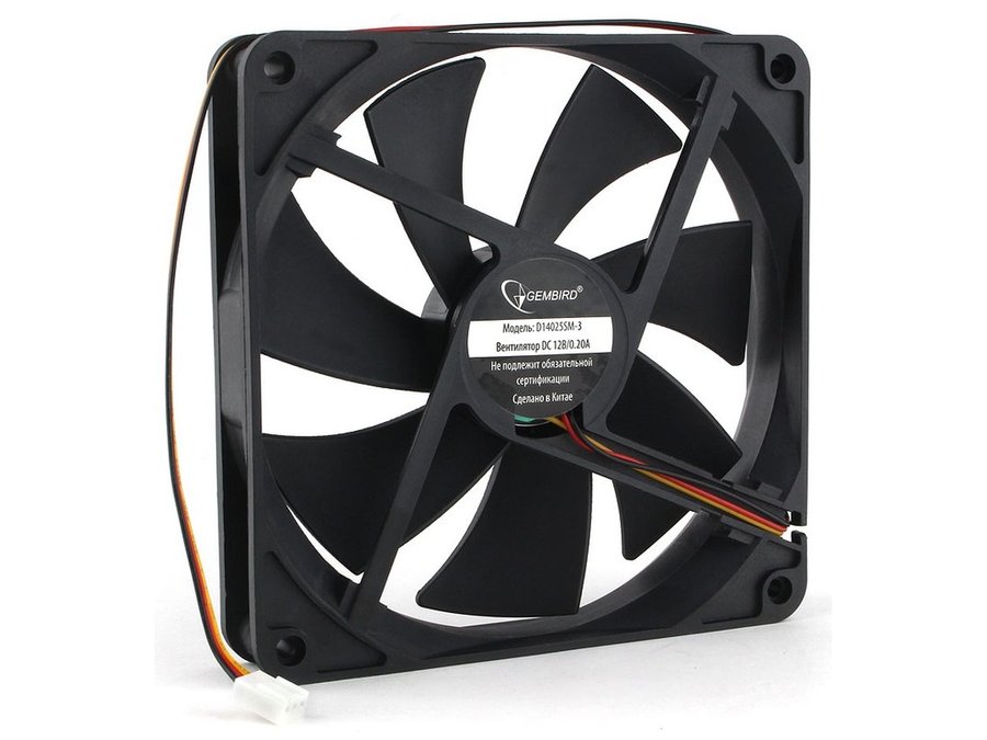В корзину Купить в 1 клик Вентилятор +12В; 140х140х25мм; Gembird, втулка, 3 pin, провод 40 см