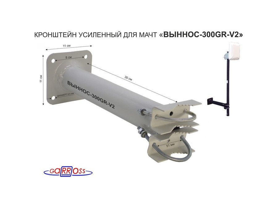 Кронштейн усиленный для мачт, вылет 0,3м "ВЫННОС-300GR-V2-113981" серый с 1отв.25мм для гофры, 51мм