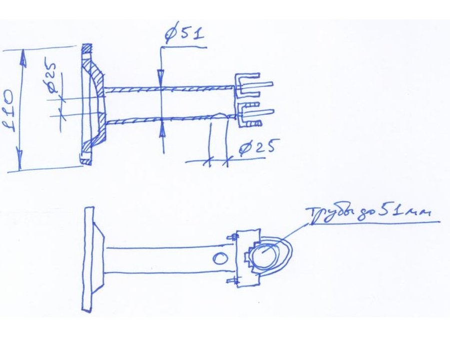 Диаметр трубы кронштейна - 51 мм