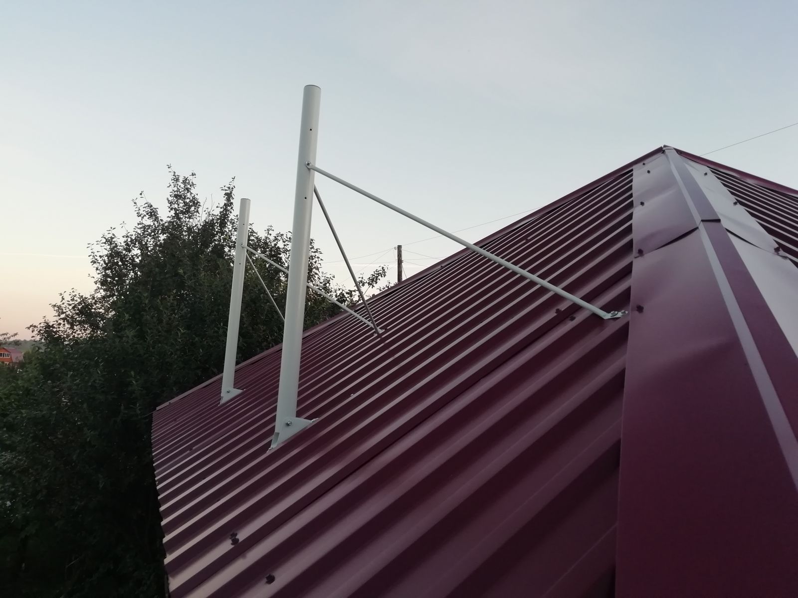 - Наличие жёстких растяжек в виде трубок и качающегося основания позволяют крепить кронштейн-мачту на кровле с различным наклоном.
