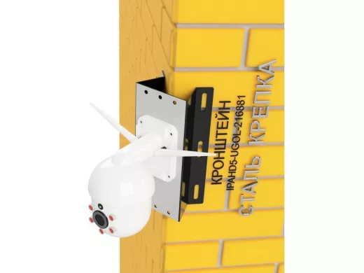 Кронштейн угловой металлический для камеры видеонаблюдения "IPAHD5-UGOL-216880". Подходит для большинства типов видеокамер: цилиндрических, купольных или поворотных