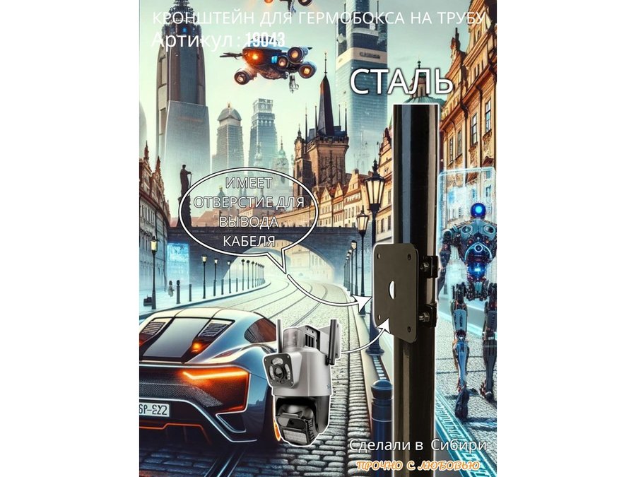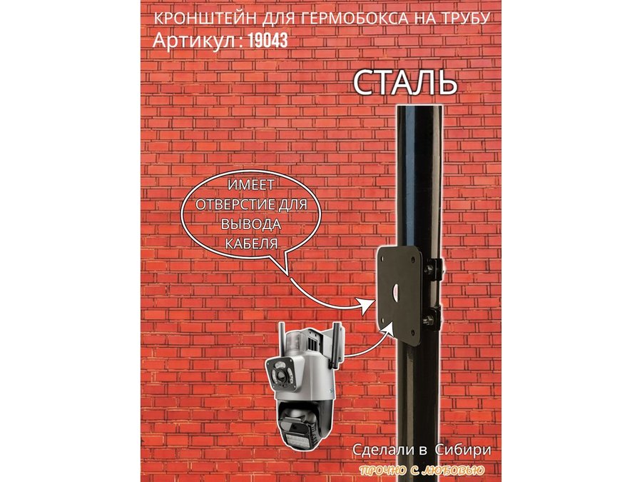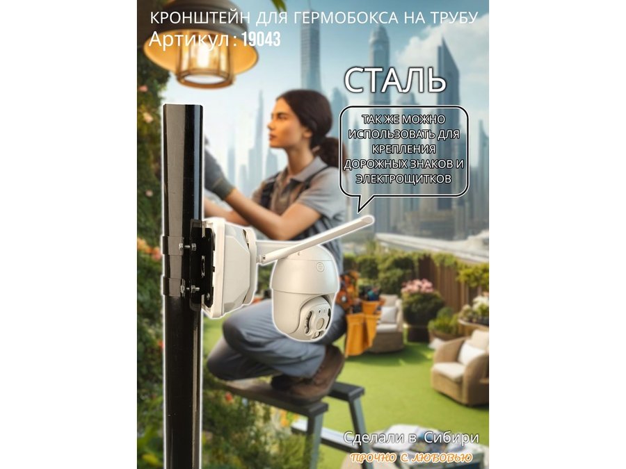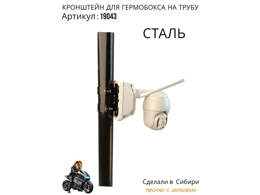 • Кронштейн позволяет быстро зафиксировать гермобокс с видеокамерой на трубу.