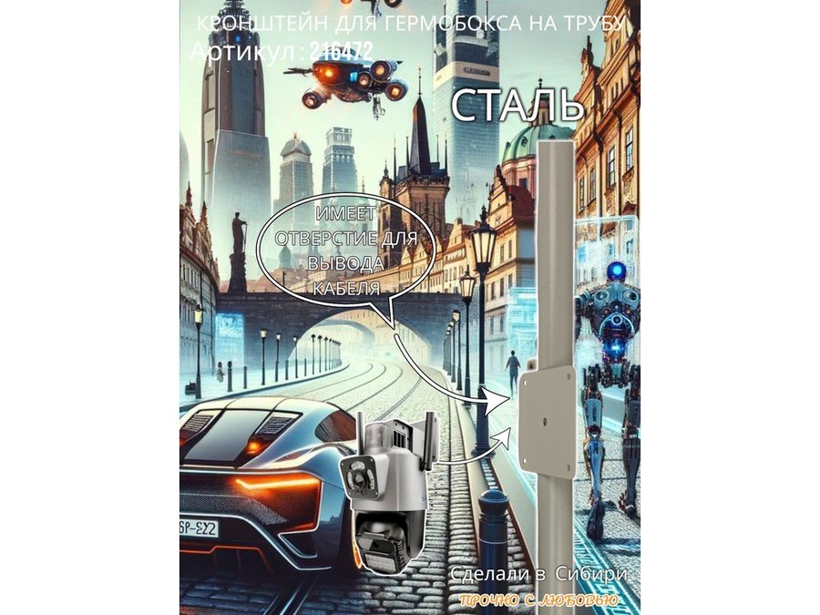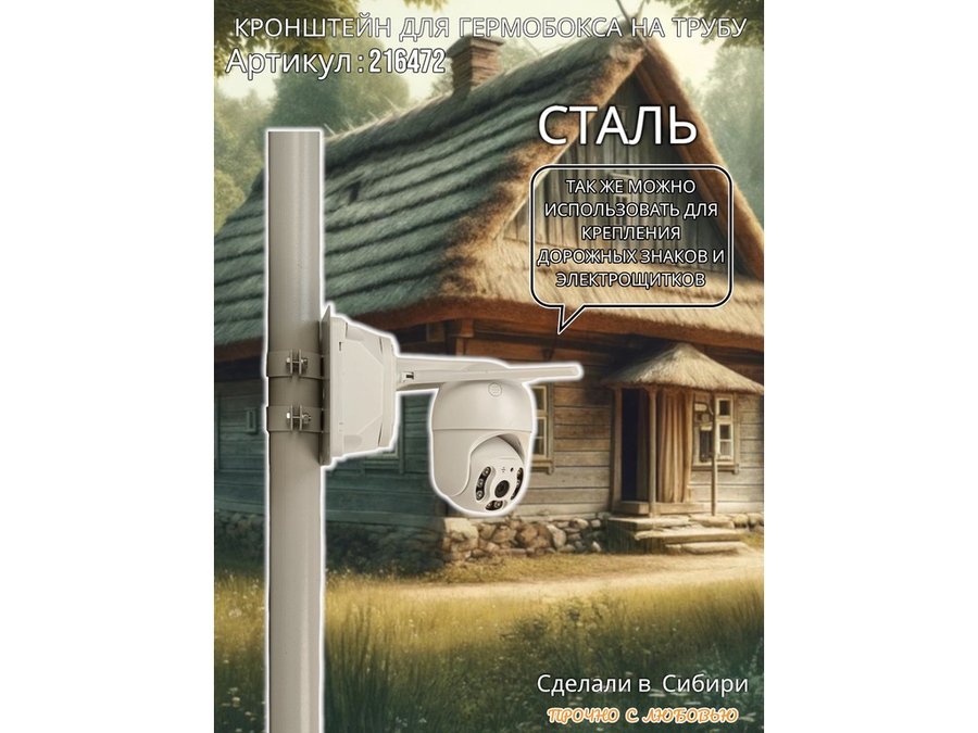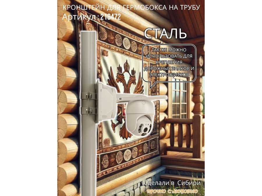 - Кронштейн позволяет быстро зафиксировать гермобокс с видеокамерой на трубу.