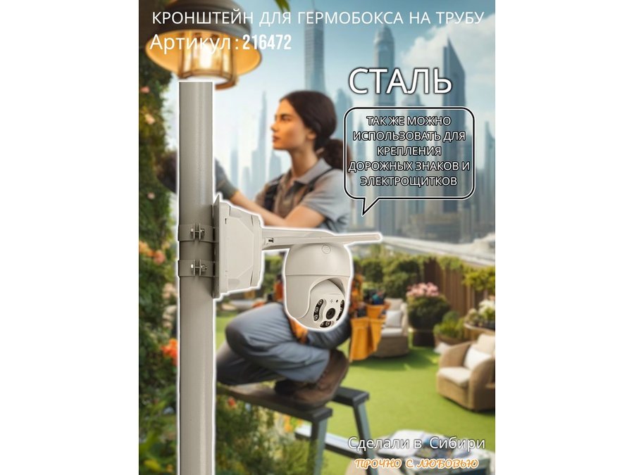 - Универсальный усиленный кронштейн предназначен для крепления гермобоксов,коробок с видеокамерой, дорожных знаков ,электрощитков на трубе диаметром 50мм.