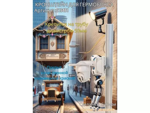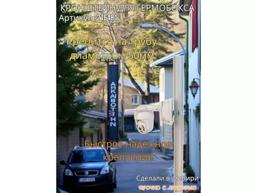 - Кронштейн позволяет быстро зафиксировать гермобокс с видеокамерой на трубу.
