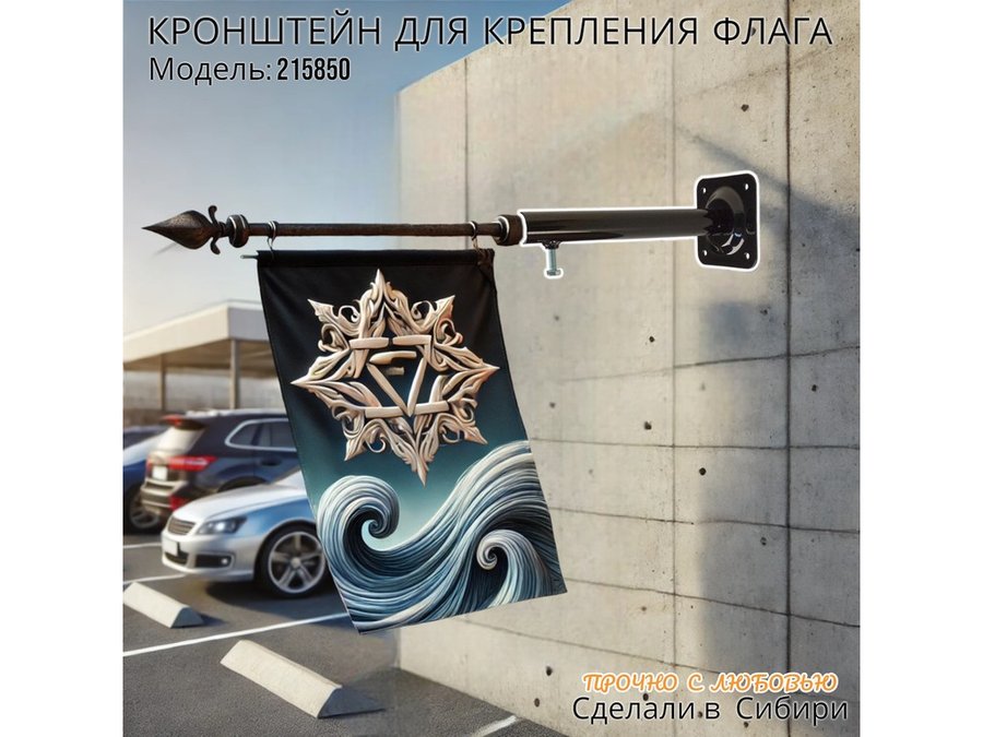 Кронштейн для крепления одного флага на стене угол 90гр вылет 25см "ФЛАГОКРЕП-215850" сталь, черный