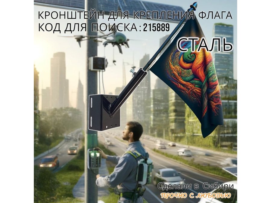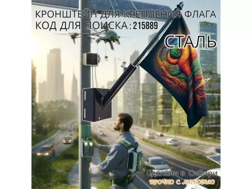 • Кронштейн позволяет быстро и прочно зафиксировать флаг или вазон на столбе без его сверления.