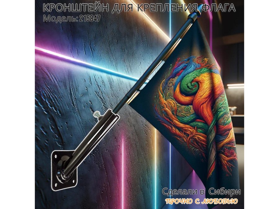 В корзину Купить в 1 клик Кронштейн для крепления одного флага на стене угол 45 градусов "ФЛАГОКРЕП-215847" сталь, цвет черный