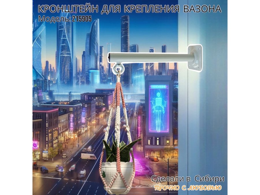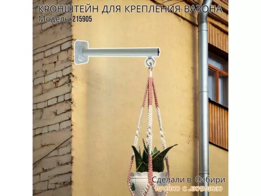 Кронштейн для крепления кашпо, вазона на стене угол 90гр вылет 35см "ПРОСЕКИНО-215905" сталь, серый