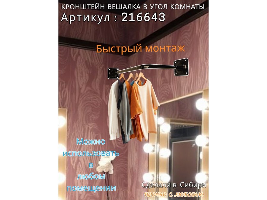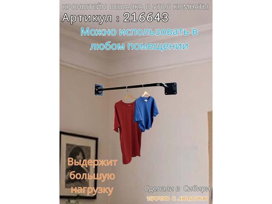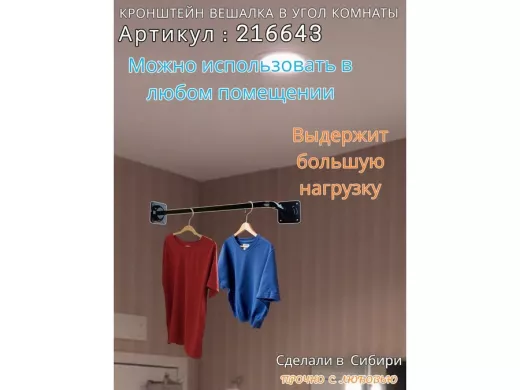 • Кронштейн для плечиков с одеждой, используется для установки в угол комнаты или к потолку.