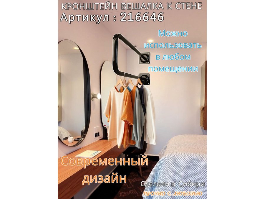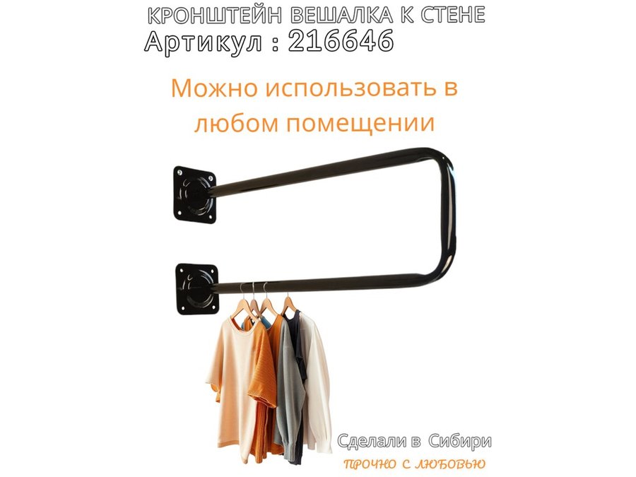 Кронштейн для плечиков с одеждой, вешалка к стене 60 х 20 см "ПРОСЕКИНО 216646" чёрный, 22мм