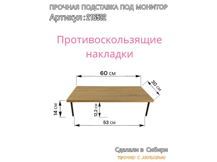 В корзину Купить в 1 клик Подставка под монитор на стол 60х30см высота 14см "ABBIKUS-216532" дуб сонома, черные ножки