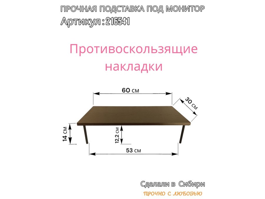 Подставка под монитор на стол 60х30см высота 14см "ABBIKUS-216541" венге, черные ножки