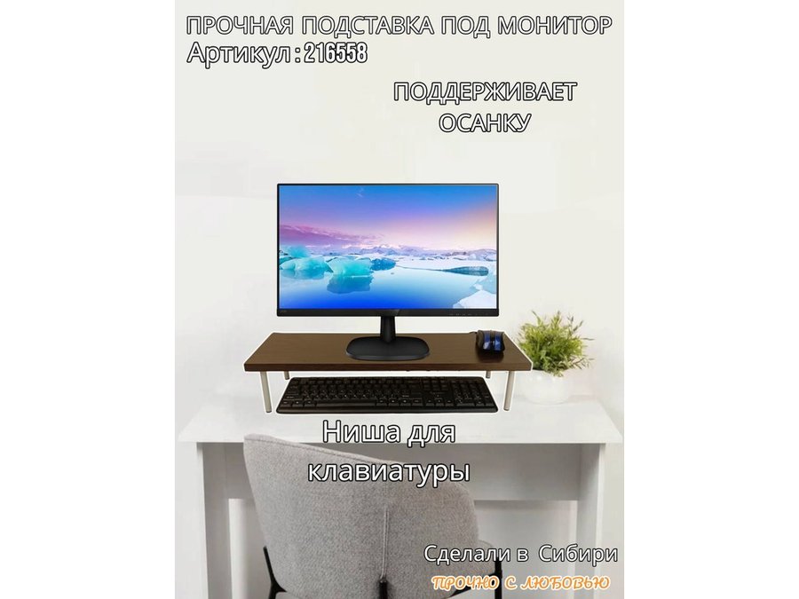 - Универсальная подставка для монитора имеет лаконичный и стильный дизайн, идеально подойдет для любого интерьера.