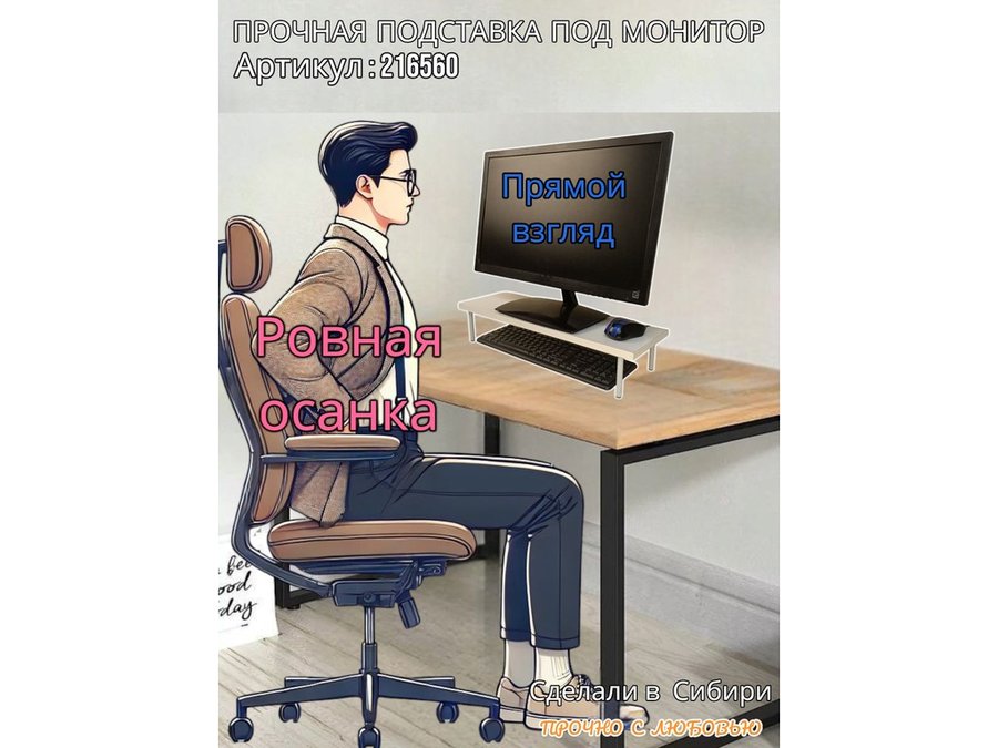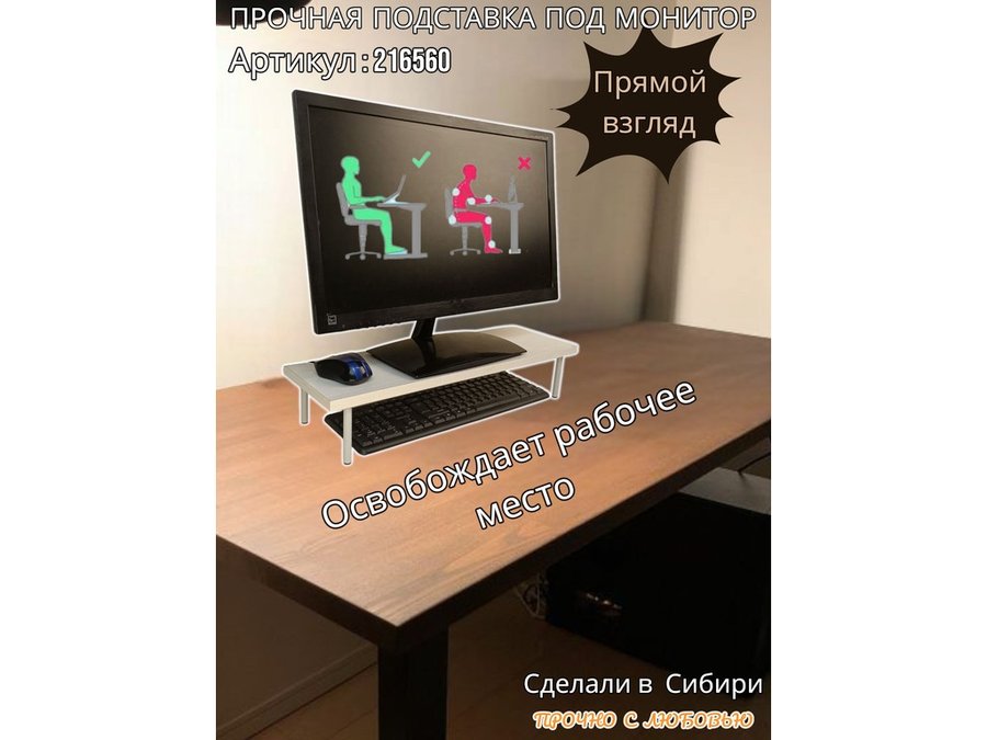 • Универсальная подставка для монитора имеет лаконичный и стильный дизайн, идеально подойдет для любого интерьера.