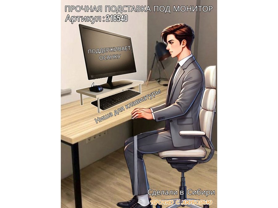 - Универсальная подставка для монитора имеет лаконичный и стильный дизайн, идеально подойдет для любого интерьера.